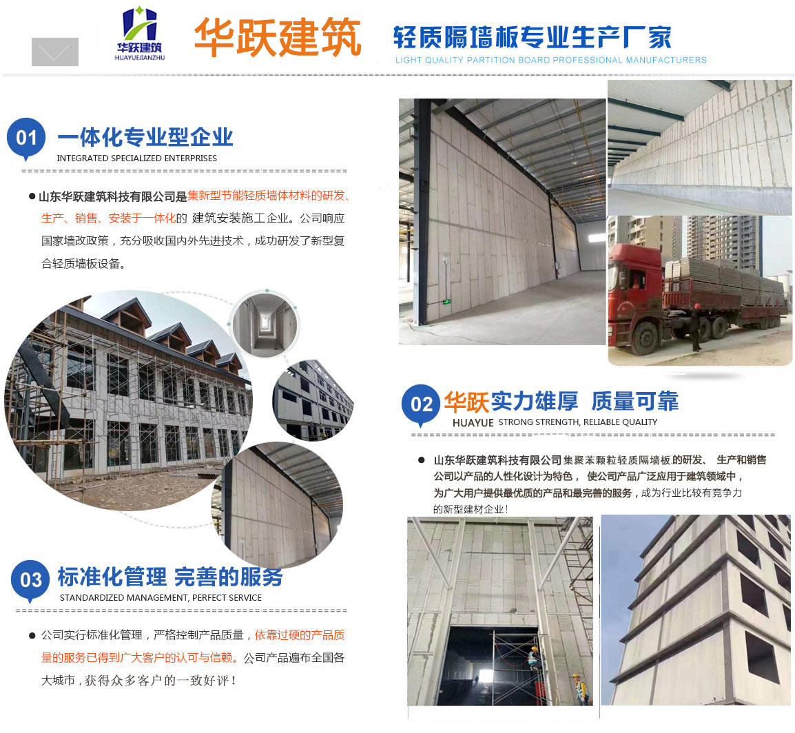 山東華躍建筑科技有限公司是一家從事新型節(jié)能環(huán)保建筑墻體材料的研究、開發(fā)、生產(chǎn)、銷售、安裝為一體的多元化建材企業(yè)。從事新型建材、聚苯顆粒輕質(zhì)隔墻板、硅酸鈣板輕質(zhì)復(fù)合墻板、輕質(zhì)隔墻板,蒸壓加氣混凝土墻板,空心板等綠色環(huán)保節(jié)能新型建材的研發(fā)、生產(chǎn)和銷售,并根據(jù)市場(chǎng)情況擬繼續(xù)擴(kuò)大其投資規(guī)模和領(lǐng)域。公司以產(chǎn)品的人性化設(shè)計(jì)為特色,使公司產(chǎn)品廣泛應(yīng)用于建筑領(lǐng)域中,成為行業(yè)有競(jìng)爭力的新型建材企業(yè)之一。公司將立足于當(dāng)代建材現(xiàn)代化發(fā)展前沿,依靠科技、勇于探索,以更好的產(chǎn)品、優(yōu)良服務(wù)、與廣大用戶攜手共創(chuàng)輝煌。公司響應(yīng)國家墻改政策,充分吸收國內(nèi)外技術(shù),成功研發(fā)了新型輕質(zhì)墻板,公司實(shí)行標(biāo)準(zhǔn)化管理,嚴(yán)格控制產(chǎn)品質(zhì)量,依靠過硬的產(chǎn)品質(zhì)量的服務(wù)已得到廣大客戶的認(rèn)可與信賴。公司產(chǎn)品遍布各大城市,與國內(nèi)、國外多家客戶建立了良好的合作關(guān)系。公司始終以“客戶價(jià)值很大化”為宗旨,堅(jiān)持“精益求精、誠而有信”的經(jīng)營理念,致力于低碳...